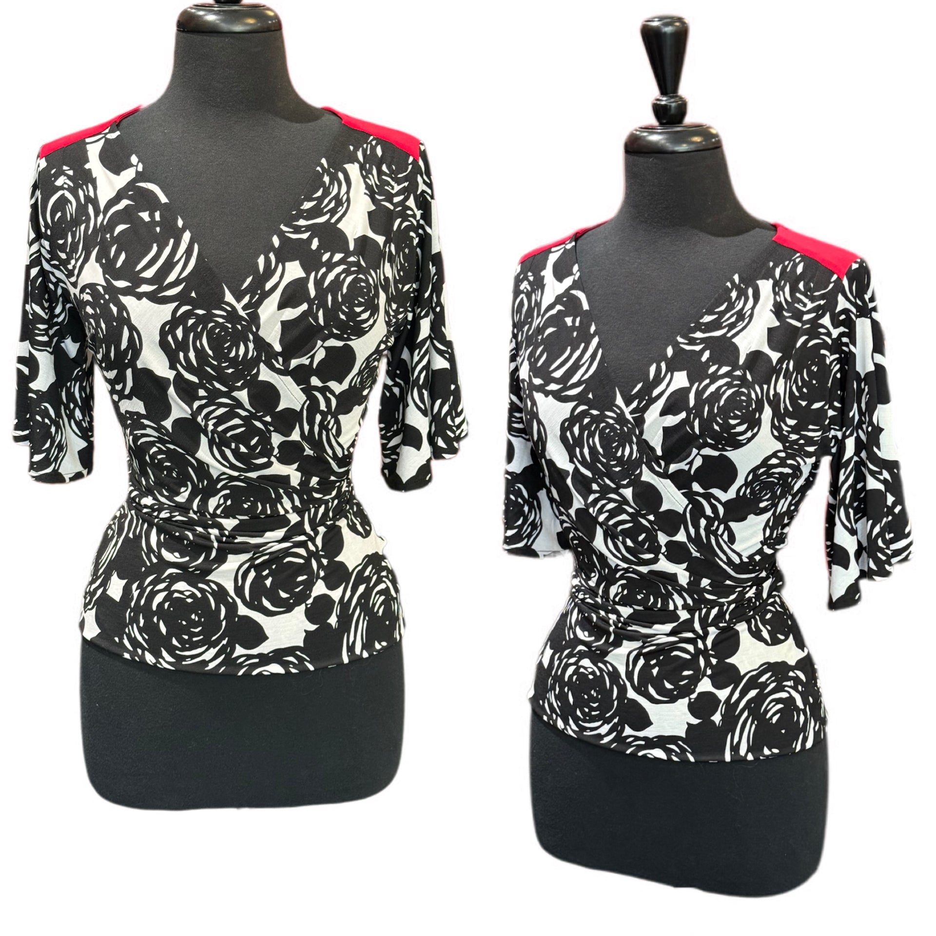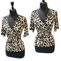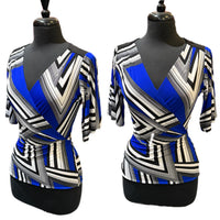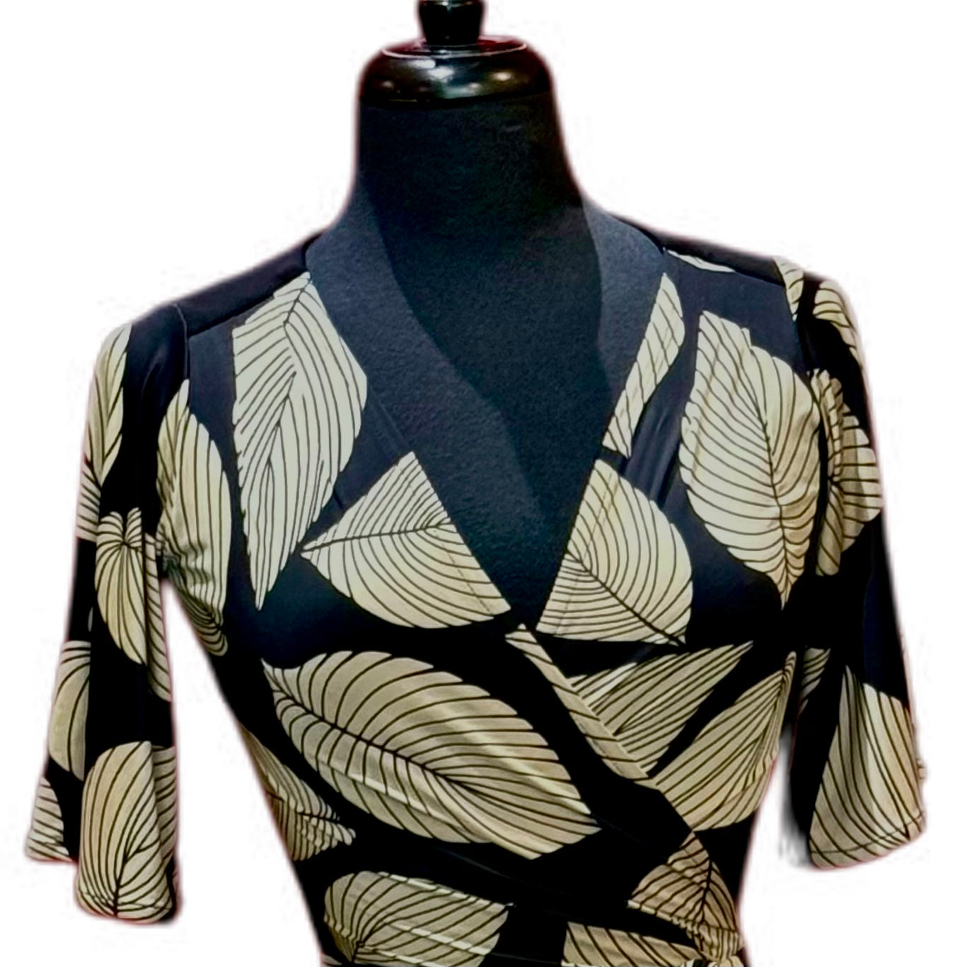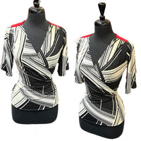 This versatile and extremely comfortable top can be worn over or tucked into a high waist skirt or pants. Made from poly/spandex. Easy to wash and wear. No ironing required!!